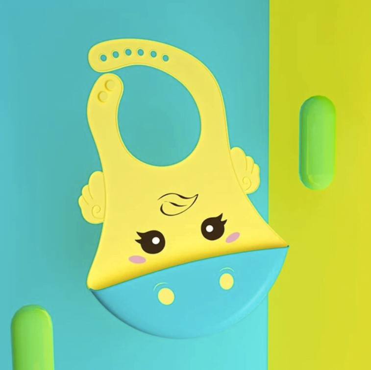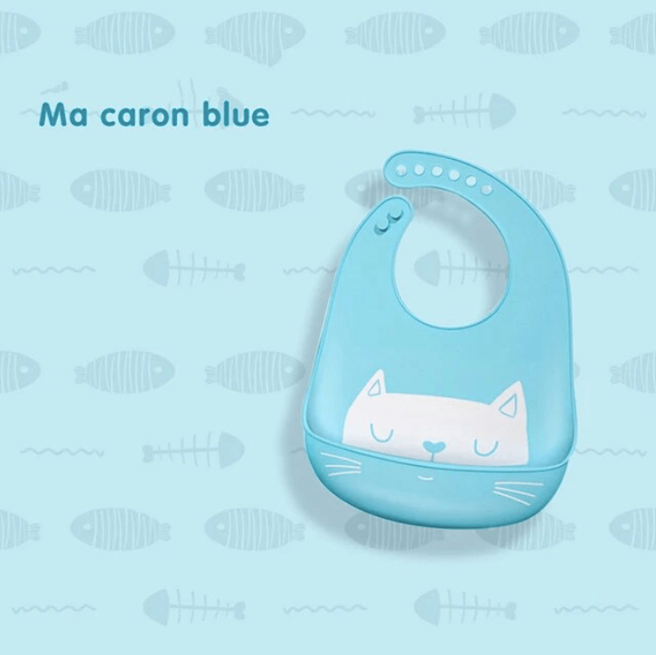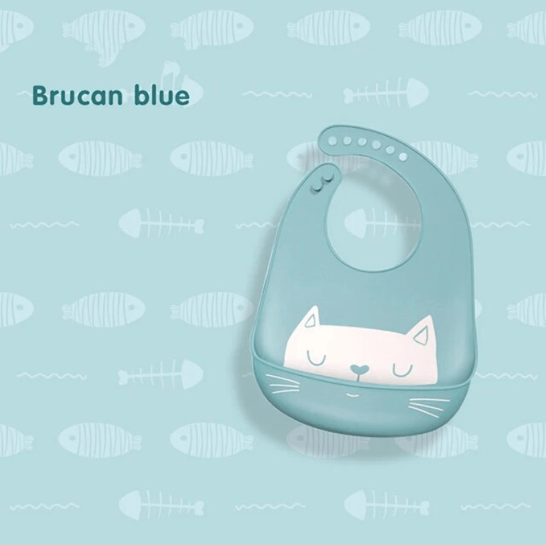 Babero de silicona con estampado de dibujos animados para bebé, niño y niña, ajustable, material de alimentación impermeable y suave.