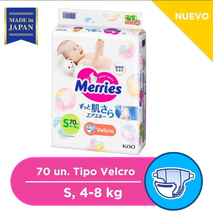 Pañales Merries Velcro S 70 Pcs Super Jumbo
