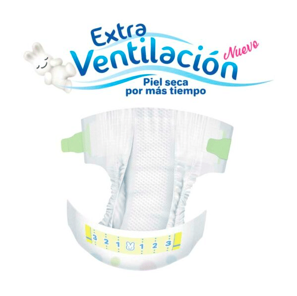 Cuenta con un sistema de ventilación triple capa, el cual expulsa la humedad y el sudor desde la parte interior del pañal.